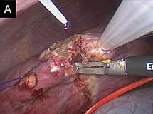 腹腔鏡下の肝切除術、膵切除術ともに拡大視効果と気腹圧によって出血量が減少することが多施設の大規模試験で確認されました。さらに術後合併症の減少や在院日数の短縮が可能です。
