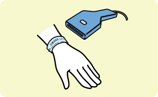 診察や治療・処置を受ける前にお名前(フルネーム)と生年月日をお聞きします。また、入院中はリストバンドの装着をお願いしております。