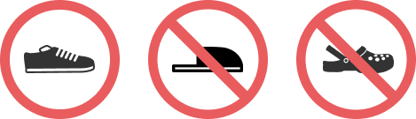 はきものは、履きなれたかかとのある物を使用してください。ゴム底の運動靴は転倒防止に有効です。スリッパやクロックスタイプは転びやすいためご遠慮ください。