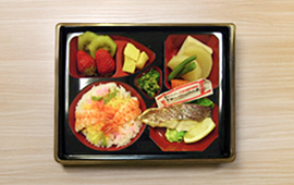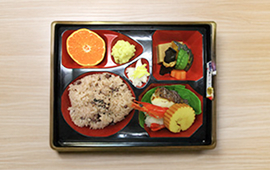 月1回のお弁当メニューや季節ごとに行事食を取り入れ、一般食の方を対象とした選択食も週2回実施しています。