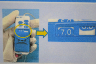 当医療センターでの術後の疼痛管理としては、硬膜外持続注入と静脈内持続注入があります。硬膜外持続注入を選択する場合、全ての患者様に加圧式医療薬品注入器「PCAポンプ」と言われるものを使用していただきます。PCAポンプは、流量切替器(フローコントローラー)により、流量をOFFから7まで切替えられる医療機器で、患者が痛みを感じた時にボタンを押すことで、ボーラス(規定量)の薬液を1ショットで追加注入する事ができます。また、ロックアウトタイムの設定により連続して使用できないようになっており、必要以上に薬液が流れないため安全に使用できます。術後数日間使用可能で、患者様の状態に応じて延長することもできます。PCAポンプは肝臓や胃、大腸等の手術にも広く使用されています。