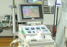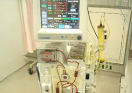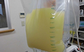 腹水の採取時は、主治医、担当看護師と連携し、貯留バックへの接続、患者および腹水の観察を行い、PlasautoLC、ACH-Σなどの血液浄化装置を使用し器材の準備、セッティング、濾過濃縮処理を行っています。