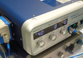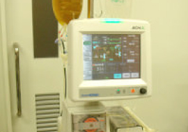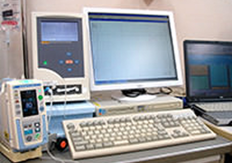 臨床工学技士とは、医師の指示のもと、生命維持管理装置などの医療機器を保守点検・操作することを業務と しています。当センターでの臨床工学技士の業務は、輸液ポンプ、 シリンジポンプ、低圧持続吸引器などの医療機器をME室で貸出、返却、点検を中央化管理しています。
