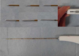 ラジオ波焼灼療法とは、約1.5mmの電極(針)からAMラジオ同じ周波数を発生させ、腫瘍内のイオンが振動運動することで摩擦熱(ジュール熱)が生じます。その結果、電極(針)周囲の組織が凝固し腫瘍の細胞が壊死します。