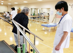 当センターリハビリテーションでは廃用性変化を予防・改善するためにも筋力増強訓練や歩行訓練、エルゴメーター等を用いて基礎体力の向上を図ります。