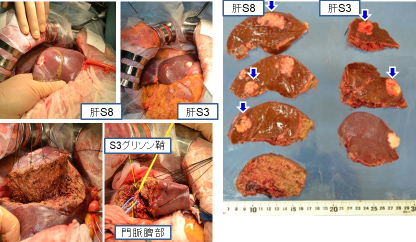 2ヵ所に分けて肝切除を行いました。根治的な切除が可能でした(手術時間 6時間、出血量 100ml)。