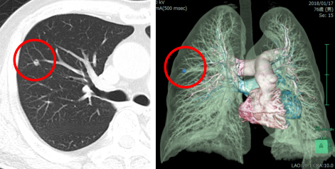 肝切除後1年半後に単発の肺転移を認めました。3ヶ月観察を行い、手術を行いました。