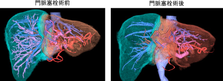 右門脈閉塞術後に右門脈は完全に閉塞しており、残肝体積は34%から42%に増大しました。