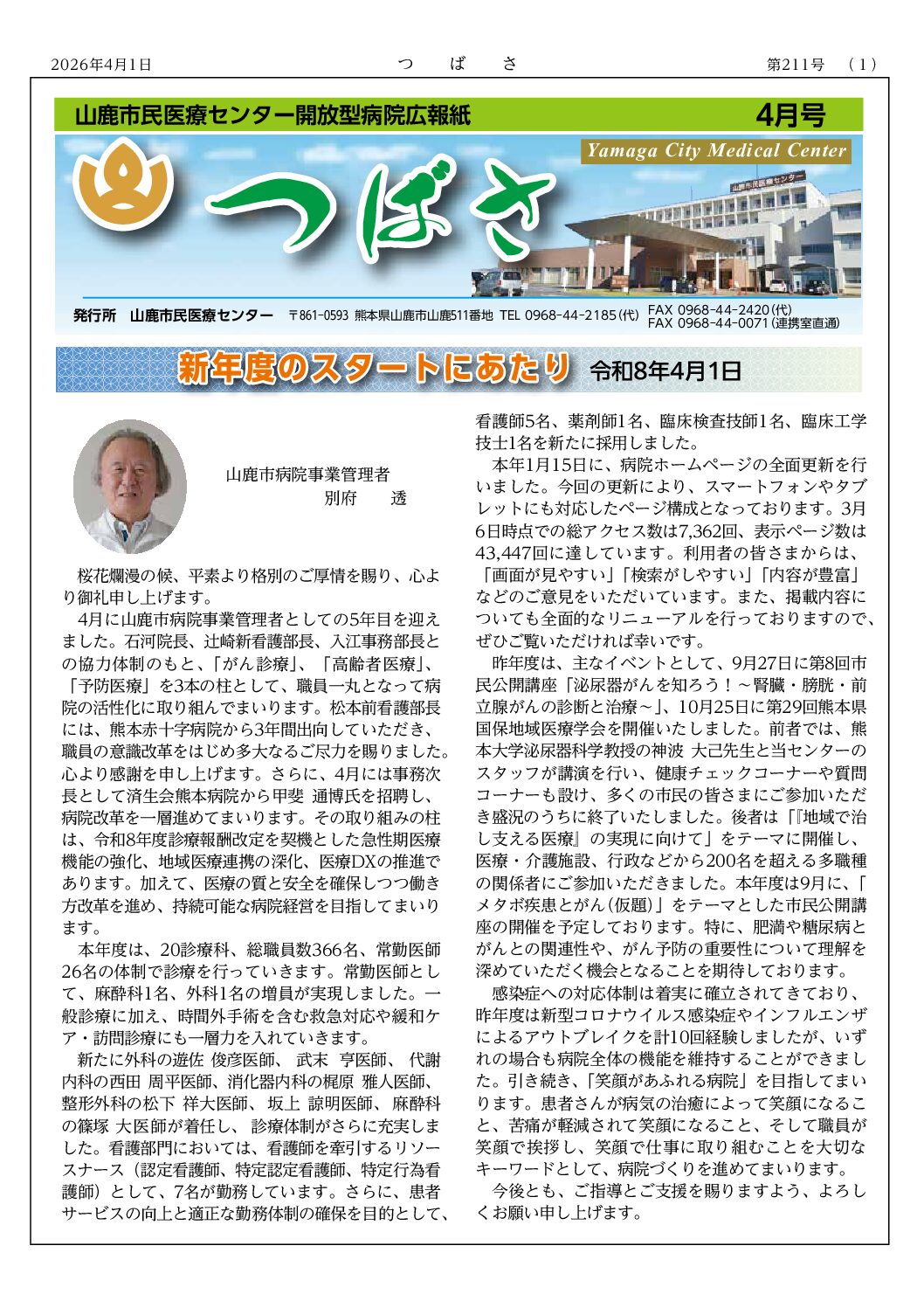 - 新年度のスタートにあたり(令和8年4月1日)病院事業管理者挨拶