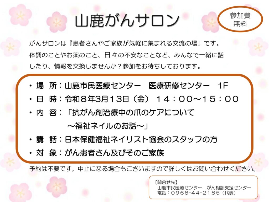 がんサロン 3月開催のお知らせ