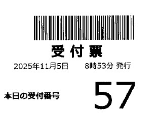 受付票の「本日の受付番号」をご確認のうえお待ちください。